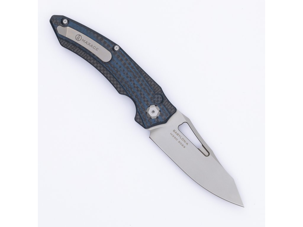 MAXACE Babylon-A, Black&Blue Carbon Fiber Handle, M390 Blade, X02A