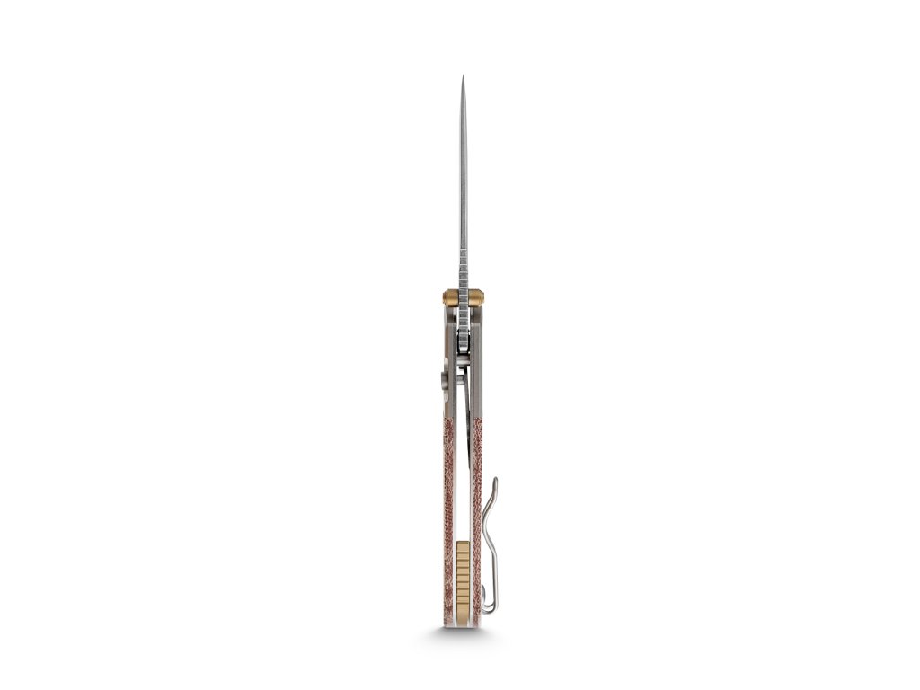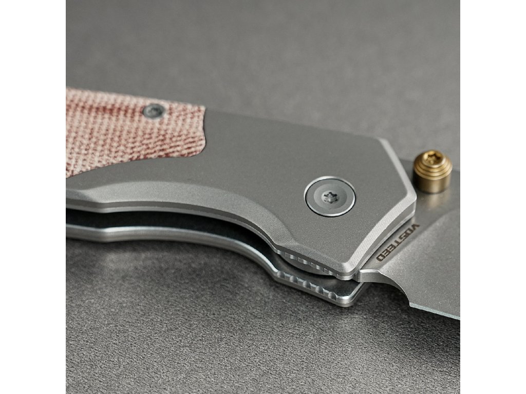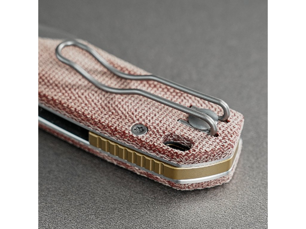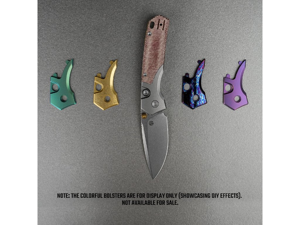 Rukojeť je záměrně navržena tak, aby spojovala vintage charakter s moderním minimalismem a je vyrobena z amerických šupinek Norplex UltreX™ Micarta a spárována s asymetrickými titanovými nebo mosaznými bouldery.