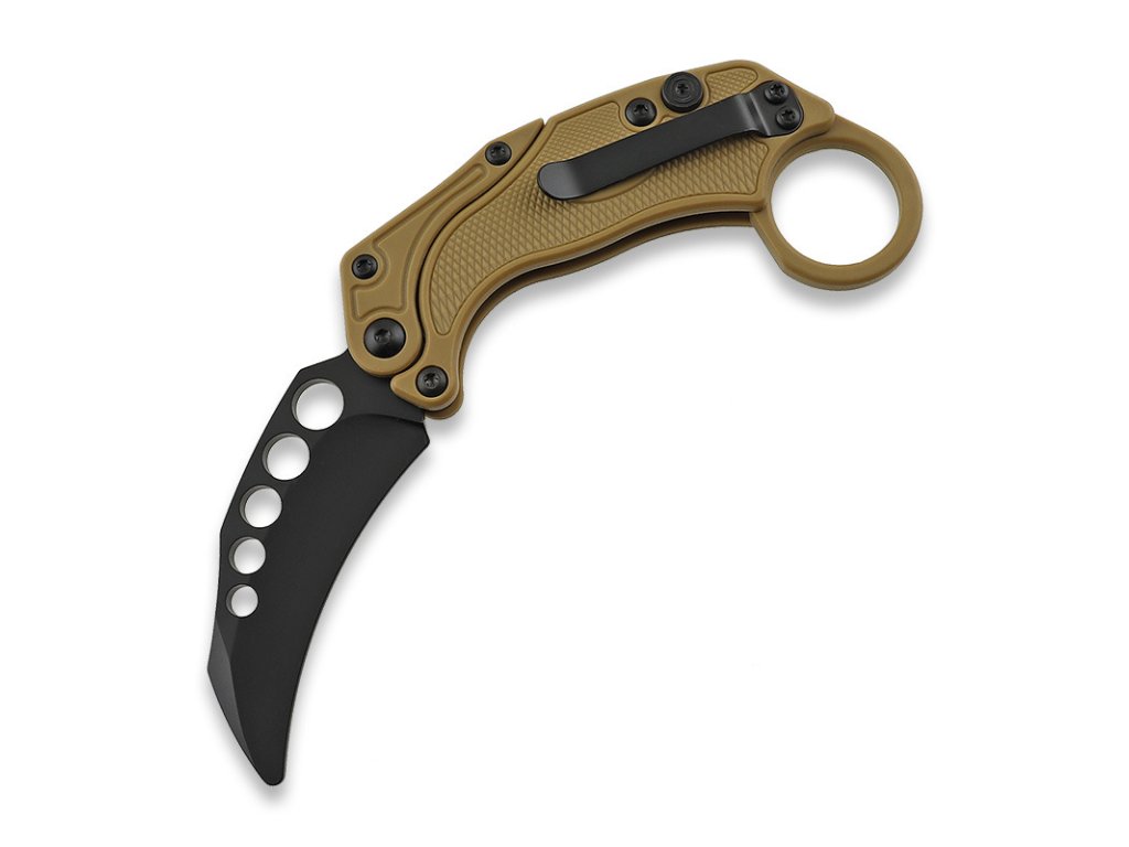 REATE EXO-K neboli Karambit EXO-K je dodáván v sadě včetně druhého tréninkového zcela realistického kusu vyhotoveného v preciznosti originálu, avšak vy můžete trénovat zcela bez obav neboť se jedná o plastovou maketu. Celková délka karambitu 170 mm z toho čepel 78 mm.