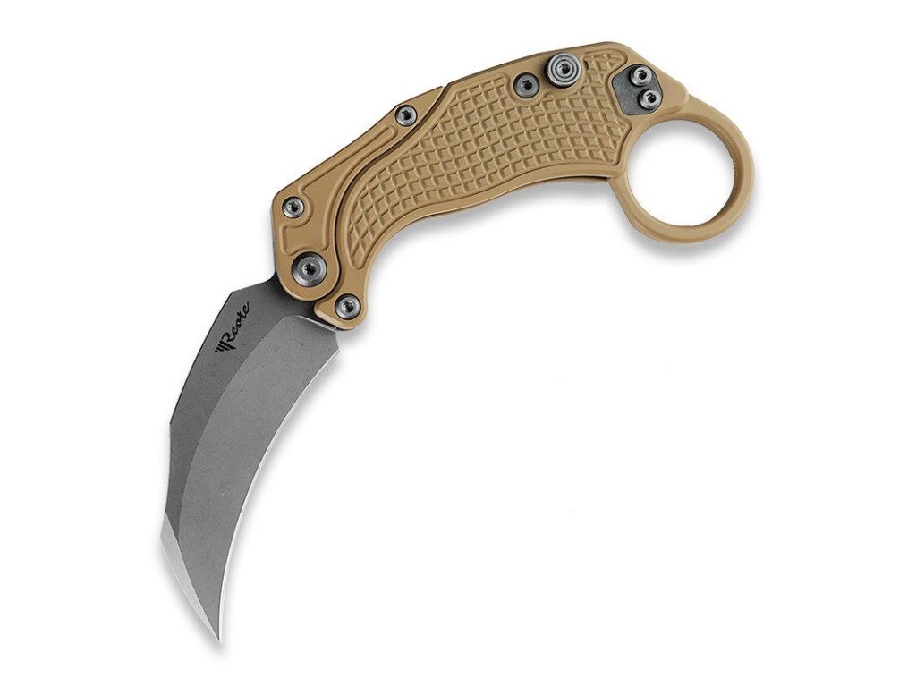 Reate EXO-K, Aluminum Ceramic Coated Tan, Stonewashed N690 Hawkbill Blade