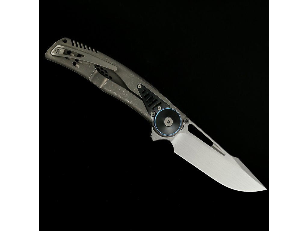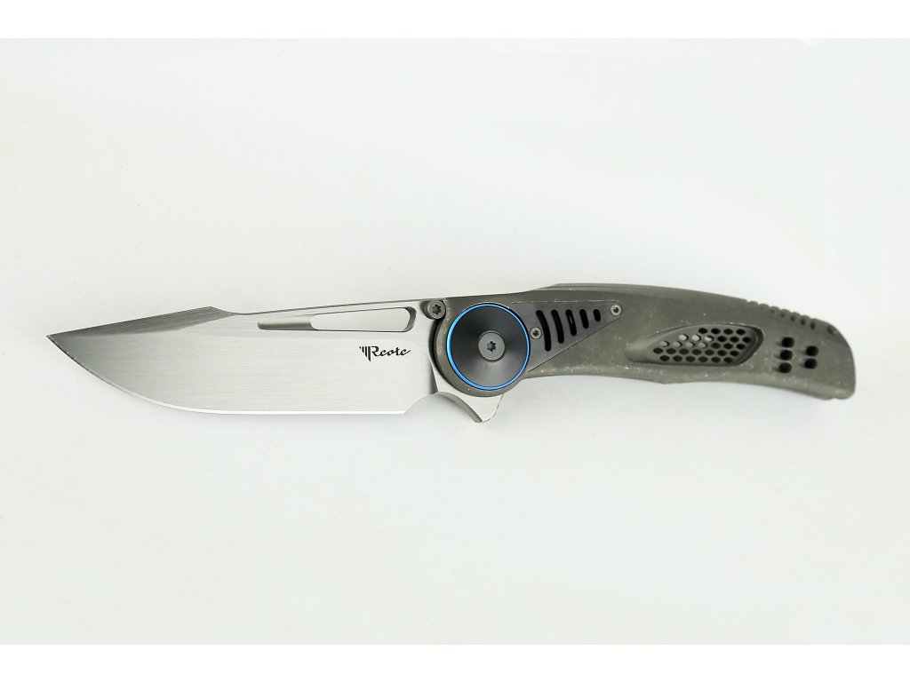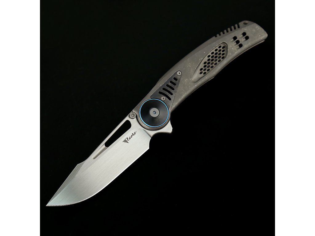 Reate GTR Integral Knife, Vintage Dark Stonewashed Titanium Handle with Zirconium Inlay, M390 Belt Satin Drop Point Blade