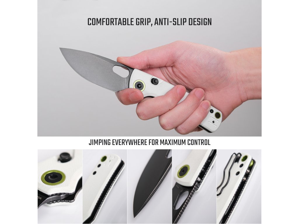 Čepel 14C28N o délce 2,99" nabízí vynikající držení ostří, odolnost proti korozi a snadné ostření.
