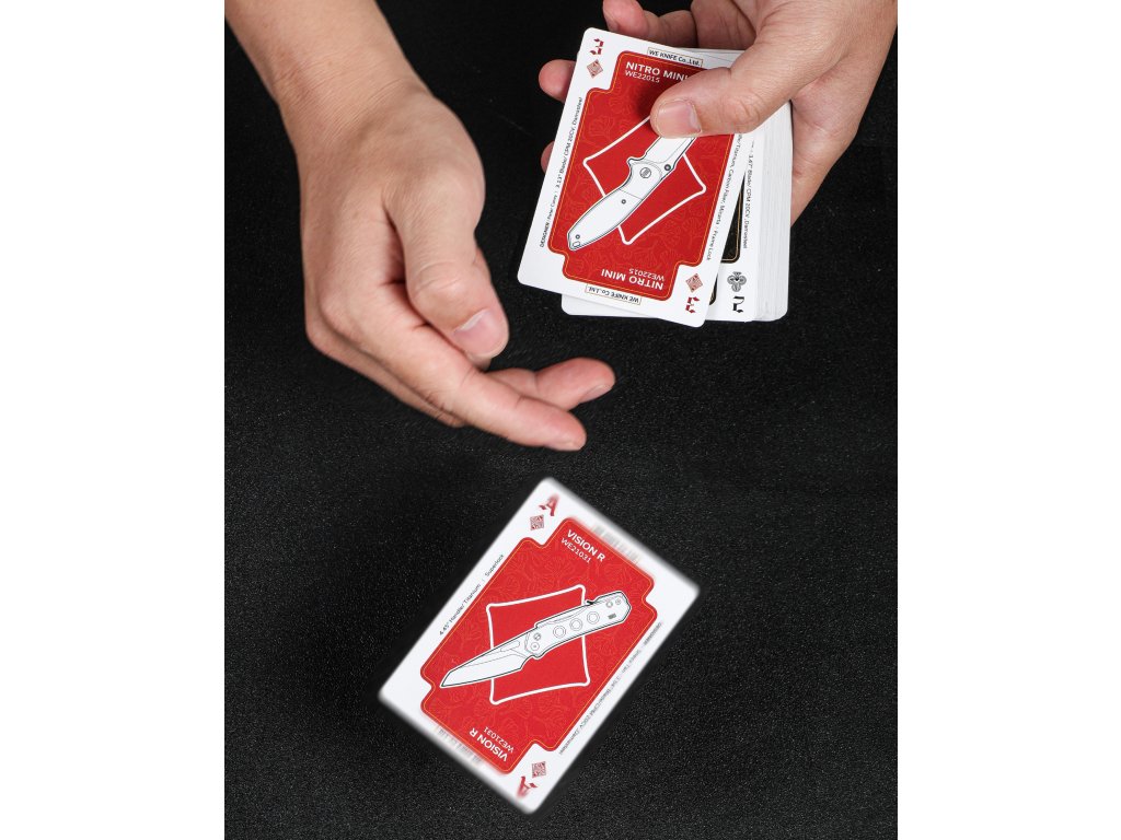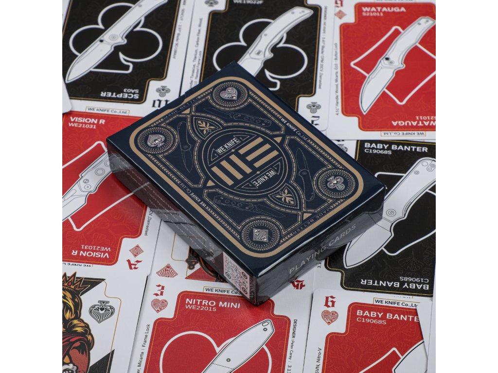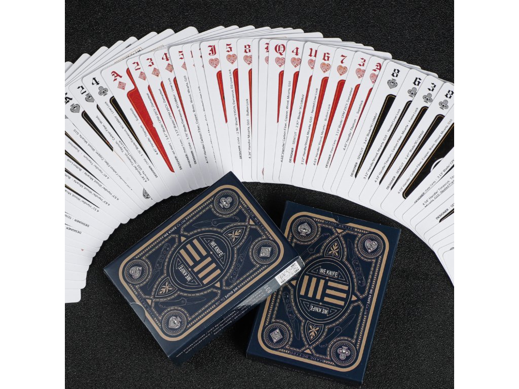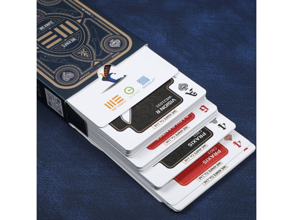WE Knife originální hrací karty v balíčku je 54+1 ks tedy jeden paket, na oblíbené karetní hry je zapotřebí alespoň 2x 54+1 ks tedy dva pakety. Produktový balíček obsahuje 2x balení á 54+1, celkem tedy: 108+2 ks. Originální hrací karty WE Knife jsou parádní trofejí pro fanoušky značek WE KNIFE & CIVIVI. Neváhejte si dopřát ostrou karetní zábavu s přáteli.