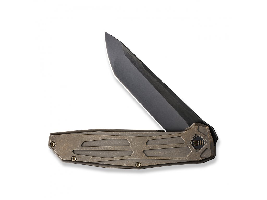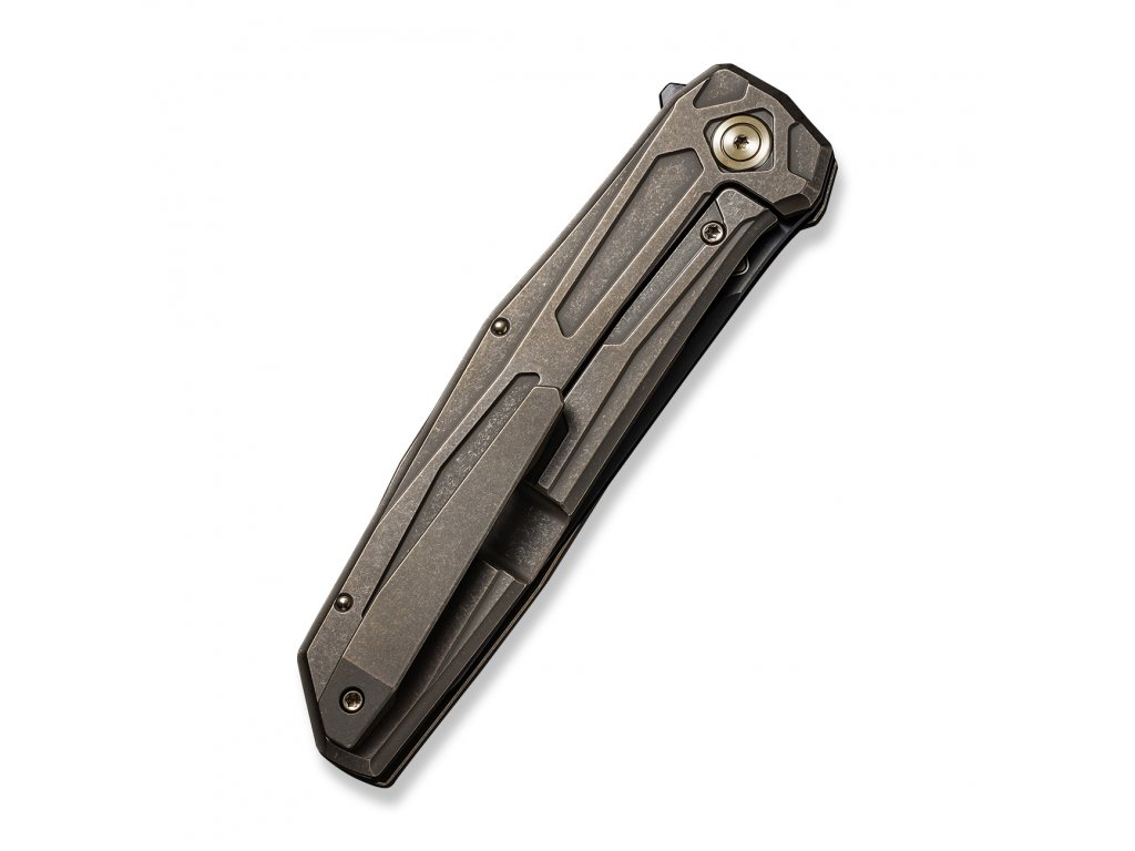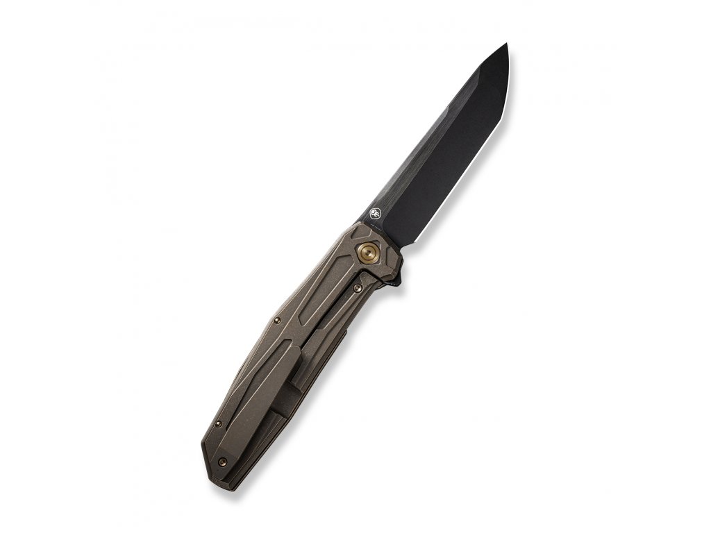 WE Knife Shadowfire Flipper Knife, Bronze Titanium Handle, Black Stonewashed Bevels, Black Brushed Flats CPM 20CV Blade, WE22035-3